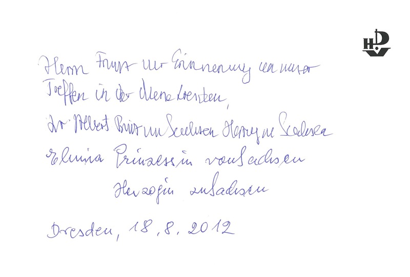 Ein Höhepunkt war der Besuch von SKH Dr. phil. Albert Prinz von Sachsen, Herzog zu Sachsen, Markgraf von Meißen und Elmira Prinzessin von Sachsen, welche durch Ihre Anwesenheit die Handwerkskunst würdigten. Nach dem zustande gekommenen Gespräch mit Prinz und Prinzessin signierte der Prinz das Buch „Das Königliche Dresden“. Bei dieser Signierung könnte es sich wohl um eine der letzten des am 06.10.2012 verstorbenen Prinzen handeln.